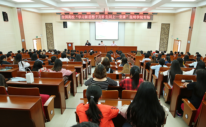 6月22日,全国高校“学习新思想千万师生同上一堂课”beat365官方网站专场在办公楼D区三楼报告厅开讲。云南省高校习近平新时代中国特色社会主义思想宣讲团成员、学校党委副书记、校长黎素梅教授和云南省高校习近平新时代中国特色社会主义思想宣讲团成员、马克思主义学院院长董学荣副教授共同为师生授课。学校党委副书记张祖武主持授课并对“学习新思想千万师生同上一堂课”工作和师生进一步学习授课内容提出要求。 黎素梅校长以《立志求学,圆梦新时代》为题开讲。她紧紧围绕习近平总书记在北京大学师生座谈会上对广大青年提出的“爱国、励志、求真、力行”的希望和要求,与师生交流学习体会、共话追梦的激情和理想、圆梦的奋斗与奉献,深刻阐述青年一代健康成长必须遵循的路径和必须坚持的方向,激励广大同学为国家和民族未来立志求学、担当重任、圆梦新时代。 黎素梅校长强调,“忠于祖国、忠于人民,立鸿鹄志、做奋斗者,求真学问、练真本领,知行合一、做实干家。”这是青年学生健康成长必须遵循的路径、必须坚持的方向。广大青年学生要把自己的理想同祖国的前途、把自己的人生同民族的命运紧密联系在一起,全面自觉笃行“爱国、励志、求真、力行”要求,激扬起奋发向上的青春力量,在辛勤耕耘中迎来人生的成功与收获。 黎素梅校长要求,广大青年学生要倍惜在校学习时光,严以律己,全面学习了解中华民族历史,秉承中华文化基因,增强民族自豪感和文化自信心,做理想坚定,信念执著,不怕困难,勇于开拓的一代青年。要博览群书,丰富学识,增长见识;深入实践,严谨务实、苦干实干,做有知识有品德有作为的社会主义建设者和接班人。 董学荣院长以《当代大学生要争做青年马克思主义者与担当民族复兴大任的时代新人》为题进行授课。他围绕大学的根本任务是立德树人,担当民族复兴大任的时代新人必须具有坚实的马克思主义理论基础,重读马克思、读懂马克思:真学、真懂、真信、真用马克思主义和学懂弄通习近平新时代中国特色社会主义思想,把当代青年的使命担当内化于心、外化于行等方面为师生作了讲授,深刻阐述了重读马克思、读懂马克思的重要意义,详细介绍真学、真懂、真信、真用马克思主义和学懂弄通习近平新时代中国特色社会主义思想的方法。号召广大师生要认真学习、深刻领会马克思主义的深刻内涵和精神实质,努力做一名马克思主义的坚定信仰者和倡导实践者,争做担当民族复兴大任的时代新人。 张祖武副书记主持总结讲话要求,学校开展“学习新思想千万师生同上一堂课活动”,一要抓住学习重点要点,推进新思想入脑入心,在融会贯通上下功夫。全校师生要进一步深入学习习近平新时代中国特色社会主义思想,深刻领会习近平新时代中国特色社会主义思想的丰富内涵和精神实质,深刻领会习近平新时代中国特色社会主义思想的学理支撑和理论蕴涵,深刻领会新时代教育工作的新要求和广大师生的新使命、新担当,切实把习近平新时代中国特色社会主义思想内化于心、外化于行,入脑入心。二要围绕立德树人根本任务,在争做新时代“四有”好老师、当好学生健康成长的指导者和引路人上下功夫。广大教师要紧紧围绕立德树人这一根本任务,将习近平新时代中国特色社会主义思想转化为学校培养社会主义建设者和接班人的政策体系、育人体系、教学模式和工作举措,转化为广大师生勇担大任、砥砺前行的精神力量和自觉行动,自觉为实现中华民族伟大复兴贡献智慧和力量。三要按照“爱国励志 求真力行”要求,在争做德智体美劳全面发展的社会主义建设者和接班人上下功夫。广大青年学生要切实践行习近平总书记提出的“爱国、励志、求真、力行”的要求,在学习实践中锤炼扎实本领,在挫折磨砺中强化担当意识,坚定理想信念,肩负起国家和民族的希望,做德智体美劳全面发展的社会主义建设者和接班人。 来自学校机关干部和信息技术学院、自动控制与机械工程学院、旅游学院、生命科学与技术系等院系的师生300余人到课聆听。一堂别开生面,面向师生的特别思政课——“学习新思想千万师生同上一堂课活动”,让beat365学生心潮澎湃、热血沸腾,极大鼓舞起学生为理想奋斗的信心与决心。