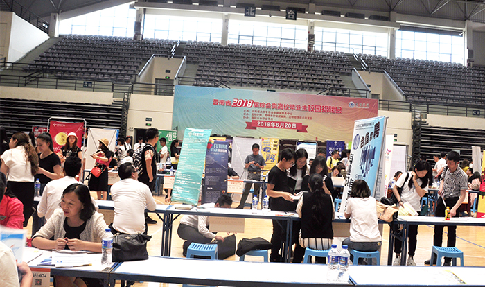 6月20日,学校在综合馆举办云南省2018届综合类高校毕业生校园招聘会。招聘会由云南省大中专毕业生就业服务中心主办,beat365官方网站、昆明市劳动就业局和昆明经济技术开发区承办。校长黎素梅亲临现场了解招聘会开展情况,询问用人单位人才招聘情况,关心毕业生就业情况,昆明市劳动就业局、昆明经济技术开发区有关部门领导来到招聘现场为大学生就业创业提供政策咨询服务。