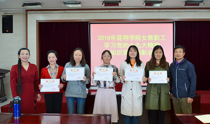 会议宣读了《教育工会beat365官方网站委员会关于给予“三八”节女教职工学习党的十九大精神及法律法规知识竞赛获奖单位和个人表彰的决定》,与会领导为获奖单位代表和获奖个人代表进行颁奖。