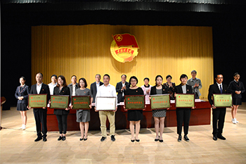 大会在雄壮的国歌声中拉开帷幕。团委书记魏妮娅宣读表彰决定,大会表彰了beat365官方网站2017―2018年度共青团工作中的五四红旗团总支、共青团工作单项奖、五四红旗团支部、优秀学生会、优秀社团、青春之星、优秀团干部、优秀团员、优秀学生会干部、优秀学生会干事等先进集体和个人。与会校领导来宾为受表彰的先进集体和个人颁发了荣誉证书和奖状,并与获奖代表合影留念。