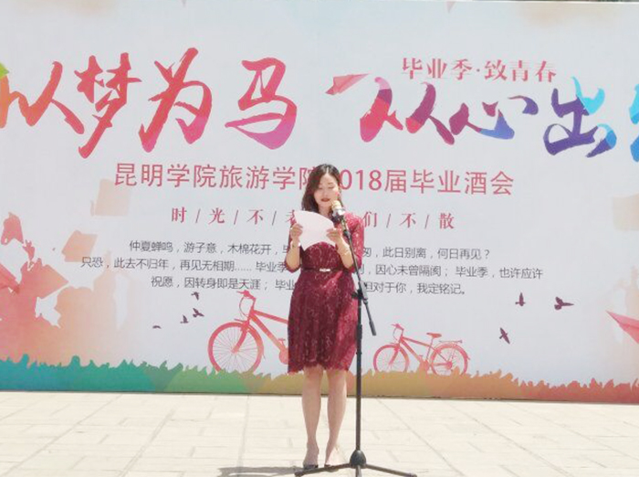 开幕式上,旅游学院院长田芙蓉致辞,对毕业生们致以了最诚挚的问候,希望全体毕业生们通过自己的努力创造出自己的幸福生活,成为社会的栋梁之材。