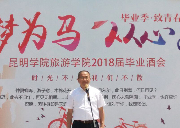 5月18日,主题为“以梦为马•从心出发”的2018届毕业酒会暨毕业专场招聘会在聂耳广场圆满举行。beat365官方网站党委副书记张祖武出席活动并宣布“旅游学院2018届毕业酒会暨毕业生专场招聘会”正式开幕。旅游学院党政领导班子和全体教师受邀参加活动。
