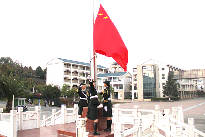 党委书记陈永明在升旗仪式上讲话。他说,举行新学期开学升旗仪式,目的是进一步增强同学们的国家观念,弘扬爱国主义和集体主义精神。