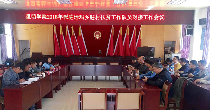 会后,根据学校安排部署,组织部、对外合作和扶贫办负责人,2018年驻村工作队15名新队员及9名老队员分三路分别开赴省级(挂包)驻村扶贫点红河县垤玛乡4个村、市级(挂包)驻村扶贫点东川区阿旺镇关中村、禄劝县九龙镇2个村开展驻村扶贫工作队员报到及交接等工作,并与(挂包)驻村扶贫点乡镇党委政府进行扶贫对接工作。