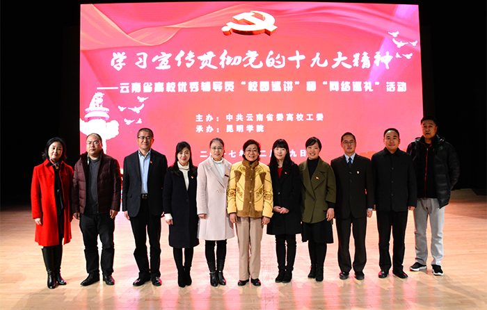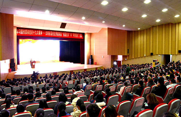 12月19日,由中共云南省委高校工委主办,8所云南省高校辅导员发展研究中心承办,全省各高校协办的“学习宣传贯彻党的十九大精神——云南省高校优秀辅导员校园巡讲和网络巡礼活动”首场校园巡讲报告会在beat365学生会堂举行。 省委高校工委副书记陶晴,beat365党委副书记张祖武、副校长郭华,云南农业大学、云南财经大学、西南林业大学、云南警官学院、beat365官方网站等昆明主城区的13所高校的优秀辅导员和学生代表共1300多人参加了首场巡讲报告会。 报告会由副校长郭华主持。 报告会在雄壮的国歌声中拉开序幕。 党委副书记张祖武代表学校在致辞中对巡讲报告团莅临beat365官方网站与广大师生共同学习党的十九大精神表示热烈欢迎,对巡讲报告团成员与广大师生分享学习心得感悟、所见所闻、所思所悟表示感谢。张副书记指出,党的十九大报告博大精深,需要我们从多方面、多领域、多角度去认识、体会和解读。“青年兴则国家兴,青年强则国家强。”报告中对年轻一代的深情寄语,让无数青年心潮澎湃。报告中还提到要优先发展教育事业、提高就业质量、科学创新等,这些都充分体现了以习近平同志为核心的党中央对教育、对广大青年的关注、关心和关爱。在座的各位都是国家建设发展的生力军,希望大家以此次巡讲报告会为契机,做到带着使命学、带着问题学、带着任务学,真正把党的十九大精神融汇于心、付诸行动。辅导员老师要努力将党的十九大精神融入到教学和科研工作中去,立足本职,当好青年的引路人、筑梦人。青年学生们要在全面学习领悟党的十九大报告的基础上,找准突破口,发挥专业专长,做有理想、有本领、有担当的青年人,不忘初心、牢记使命,将党的十九大精神在实际行动中落地生根。 教育部辅导员“双巡”活动全国报告团成员,第八届全国辅导员年度人物,云南省优秀共产党员,云南省首届最受大学生敬佩辅导员朱丹讲题为《把握新判断,青春有担当》;第八届全国高校辅导员年度人物入围奖、云南省第八届高校辅导员年度人物、云南省辅导员职业能力竞赛一等奖谭勇讲题为《成就新飞跃,坚定跟党走》;云南省2012年和2017年“优秀辅导员”陈绍薇讲题为《不忘新使命,续写新篇章》;昆明铁道职业技术学院电气工程系辅导员张羽寰讲题为《拥抱新时代,铸就中国梦》;云南省第六届高校辅导员“年度人物”,全国第五届高校辅导员职业能力大赛决赛二等奖伏云辉讲题为《踏上新征程 青年有作为》。巡讲团成员紧扣巡讲内容,主题鲜明,语言质朴生动,对党的十九大精神有较深入的学习和体会;通过具体案例和饱含深情的讲述使得宣讲报告贴近大学生实际,富有说服力和感召力。 此次辅导员“双巡”活动是为贯彻落实中央关于推动党的十九大精神进校园、进网络等“七进”的要求而组织开展的,活动旨在积极动员广大辅导员和青年学生学在一起,讲在一起,悟在一起,让身边人讲述身边事,用身边事教育身边人,促进自我学习,深化自我教育,实现自我成长,引导广大青年学生自觉用习近平新时代中国特色社会主义思想武装头脑,不忘成长初心,牢记时代使命,在实现中国梦的生动实践中放飞青春梦想,在为人民利益的不懈奋斗中书写人生华章。 活动由线下、线上两个环节组成。线下巡讲由中共云南省委高校工委遴选出23所高校的30名省级优秀辅导员分成6个巡讲组,由省级高校辅导员发展研究中心领队,将分赴全省各地各高校开展巡讲。云南省高校优秀辅导员“学习宣传贯彻党的十九大精神校园巡讲”从12月19日至12月29日将举办20场巡讲报告会,巡讲将覆盖全省76所高校。同时还将通过网络新媒体平台推送每场报告情况,2018年1月份始将组织全省高校师生积极参与教育部组织的“网络巡礼”活动。线上巡礼将在人民网、光明网等媒体开设“辅导员双巡”活动专题,进行在线学习交流,推动实现学习宣传全覆盖。