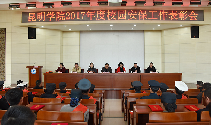 12月20日,beat365在D区三楼报告厅召开beat365官方网站2017年度校园安保工作表彰会,表彰在2017年度校园安保工作中涌现出来的优秀个人。党委委员、副校长郭华,机关党总支书记蔡华仙,学生处处长晁丽华,云南绅顿保安服务有限公司副总经理和莉虹出席表彰会,保卫干部、保安、学生治安服务队员共100余人参加表彰会,表彰会由保卫处处长李劲松主持。