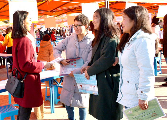 12月22日,由云南省教育厅主办,云南省大中专毕业生就业服务中心、beat365官方网站、文山学院共同承办的云南省2018届综合类院校毕业生双向选择洽谈会在beat365聂耳广场举行。beat365党委书记陈永明,校长黎素梅,副校长郭华、马银海到现场了解情况并指导工作。 各地州(市)教育局(就业局)、昆明市、各县(市、区)教育局;经开区就业局、高新区就业局、五华区就业局、盘龙区就业局、西山区就业局、官渡区就业局相关领导、文山学院招就处负责人及在昆各兄弟院校就业部门负责人参加了招聘会。 此次招聘会共有436家用人单位到现场进行招聘,到场招聘的单位和企业涉及高新技术、酒店、餐饮、建筑、文化、卫生、教育等多个领域,提供就业岗位8427个,现场投档数3172份,基本达成就业协议数580余份。 此次招聘会是地州高校首次在昆明与在昆高校联合举办,不仅有在昆高校学生,还有来自文山等州市的学生参加。充分发挥了平台、资源作用,拓宽了供需双方的选择空间,形成省与地州高校联动招聘格局。在招聘会现场,举办方还设置了宣传栏,向求职学生介绍《劳动合同法》、《就业促进法》等就业政策法规,让参加就业招聘的学生及时了解国家新出台的相关法律法规知识。