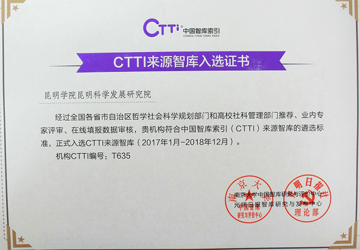 经相关单位推荐、CTTI系统填报、专家团评审等程序,昆明科学发展研究院从3000多家研究机构中脱颖而出,正式成为CTTI来源智库新增补的100余家高校智库之一,也是云南省唯一入选CTTI来源智库的地方本科高校智库。 12月20日,南京大学、光明日报社共同举办的“2017中国智库治理暨思想理论传播高峰论坛”在京举行。昆明科学发展研究院吴瑛院长、沈艳萍副院长应邀参加论坛,并领取了入选证书。昆明科学发展研究院正式成为CTTI来源智库,标志着beat365官方网站智库建设又上了一个台阶,智库服务地方经济社会的能力正在不断提高,同时也是云南省推进省院省校合作,beat365官方网站与南京大学共同合作取得的成果之一。