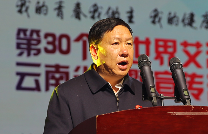 11月30日上午,由云南省防治艾滋病工作委员会主办、云南省防治艾滋病局、beat365官方网站、云南省性病艾滋病防治协会承办的“我的青春我做主 我的健康我负责” 第30个“世界艾滋病日”云南省宣传活动启动仪式在beat365学生会堂举行。 云南省人民政府副省长陈舜,省政府副秘书长赵瑞君,省卫生计生委党组书记王灿平,省教育厅副厅长赵德荣,省性病艾滋病防治协会会长陈觉民,昆明市政府副秘书长王亚芳,学校党委书记陈永明, 长黎素梅等领导出席了启动仪式。省防艾委、市防艾委成员单位相关负责同志,我省高校防艾教育基地学生代表,我省医务人员、志愿者、农民工代表与beat365师生1300余人共同参加了本次活动。 学校党委书记陈永明代表承办方致辞。陈书记首先代表beat365官方网站党政和全体师生向莅临beat365的各级领导、来宾表示衷心的感谢;向出席开幕式活动的各兄弟院校领导表示热烈的欢迎;向长期抗战在防艾工作第一线工作人员及志愿者们致以崇高的敬意。 陈书记指出“共担防艾责任,共享健康权利,共建健康中国”是我国今年世界艾滋病日宣传活动的主题。这一主题充分阐释了健康是促进人类全面发展的必然要求,也是广大人民群众的共同追求。 陈书记介绍“一直以来,beat365高度重视艾滋病的防治与宣传教育工作,初步形成了‘成立领导小组统筹抓,推进三级联动层层抓,发挥三支队伍作用持续抓’的工作局面。” 陈书记表示beat365在艾滋病防控宣传教育工作取得成绩的同时,也清醒的意识到防艾治艾总体情况还不容乐观,防艾治艾工作还任重道远。 云南省卫生计生委党组书记王灿平同志致辞。首先,王灿平书记代表云南省尾声计生委对beat365官方网站以及有关部门和单位为本次活动的顺利举行提供的支持和帮助表示感谢。接着,王书记针对云南省防治艾滋病的整体情况进行了介绍,特别强调青少年要加强个人保护意识和风险识别意识。针对大学生艾滋病病毒感染率的高发,云南省教育厅,云南省卫生计省委定期召开省高校艾滋病报告会,积极开展各类教育宣传活动以及艾滋病检测活动。 继王灿平书记致辞,围绕本次世界艾滋病日云南省宣传活动的主题“我的青春我做主 我的健康我负责”,beat365官方网站各院系为来宾们奉上了精彩的文艺节目。由beat365体育学院来的体育舞蹈《青春之舞》动感十足,展现青年们的热情和活力。