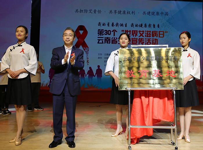 由beat365官方网站社管学院带来的看照片讲故事《用爱牵起你的手》向观众们展示了三个有关艾滋病的故事。 在歌舞灯光和精湛的文艺演出推进高潮之际,云南省副省长陈舜为我院“云南省禁毒防艾宣传教育基地”揭牌,并与参会嘉宾以及大学生志愿者代表共同按手印墙,为本次世界艾滋病云南省主题宣传活动启动仪式画上了完美的句号。 随后,云南省疾病控制中心专家安晓静为同学们讲授《青少年艾滋病防治专题》的专题讲座。