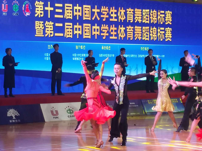12月9日,中国大(中)学生体育舞蹈领域的最高级别赛事——“第十三届中国大学生体育舞蹈锦标赛暨第二届中国中学生体育舞蹈锦标赛(南区赛)”,在合肥体育中心开赛。参加开幕式的领导和嘉宾有中国大学生体育协会专职副主席华爱军先生,中共安徽省委教育工委副书记王佩刚先生,合肥市人大常委会副主任阚建华先生,中国科学院合肥物质科学研究院副院长吴四发先生,中国大学生体育协会体育舞蹈分会秘书长、beat365官方网站体育学院院长孙晓坤先生,中国大学生体育协会竞赛部项目官员李臻女士,中国大学生体育协会体育舞蹈分会常务副秘书长田应娟女士,安徽省教育厅体卫艺处丁仁能先生,合肥师范学院校长孙道胜先生,合肥市体育局局长菅青先生,合肥市教育局副局长桑韧刚先生,合肥市瑶海区副区长康震纪先生,合肥市教育局基教处处长谢华国先生,合肥市教育局学生管理中心主任刘原徽女士,合肥科学岛实验中学校长陶坚波先生,合肥第十一中学校长舒东波先生。