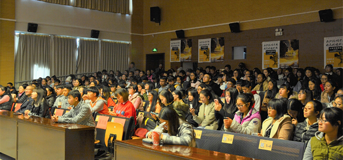为贯彻落实党的十九大精神,将“校园影院”打造成为校园思想道德教育和公共艺术教育的有效平台,学校联合云南广电传媒集团,在校园内共建“七彩校园影院”。12月8日,“七彩校园影院”——beat365官方网站影院成功举行首映仪式,云南本土题材影片《童话先生》正式上映,这标志着beat365官方网站校园影院正式投入使用。beat365官方网站党委副书记张祖武,云南广电传媒集团副总经理杨于明,云南金彩视界影业股份有限公司副总经理钱虹宇,以及beat365官方网站各院系热爱电影的同学们参加了此次活动。 张祖武副书记在首映仪式上致辞,强调建设校园影院的意义。他说:“校园影院的建成,是落实党的十九大精神的具体举措,校园文化是社会主义文化的重要组成部分,beat365官方网站影院的落成,将为beat365传播先进的社会主义文化提供重要的阵地,我希望通过全校师生共同努力,把七彩校园影院打造成为大学生思想教育的平台,打造成为我们弘扬社会主义核心价值观的平台。” 杨于明副总经理对beat365的七彩校园影院的发展有很大的期待,他表示,积极推进七彩校园影院建设,有利于充分发挥电影艺术在培育和践行社会主义核心价值观方面的积极作用。他希望把更多更好的优秀电影作品引入大学校园,让更多的大学生们走近电影、了解电影、爱上电影,甚至创作电影。通过主流影像的思想表达、巩固主流舆论阵地,丰富高校文化生活。 电影的导演李宗泰和演员甫枭虎也来到了活动现场,他们代表主创团队,分享了电影拍摄过程中的逸闻趣事,他们说:“云南本土的电影是小众的,但是文化的层次却是比较高的,《童话先生》这部影片旨在传达习近平总书记提出的不忘初心,继续前进的精神,鼓励当代大学生不忘初心,努力学习,奋发向上。” 校园影院的启动仪式在电影制作人的致辞后正式开始。首先,beat365官方网站党委副书记张祖武和云南广电传媒集团副总经理杨于明进行授牌,之后由beat365官方网站党委副书记张祖武、云南广电传媒集团副总经理杨于明、云南金彩视界影业股份有限公司副总经理钱虹宇和《童话先生》的导演李宗泰共同为大家拍下场记板。拍下场记板,大屏幕亮起,电影《童话先生》正式开播。 云南本土电影《童话先生》,是一部讲述英国作家来云南支教的电影。电影情节简单易懂,演员们的对话生动有趣。电影在东西方文化的冲突中产生了大量令人啼笑皆非却又深深思考的情节,较为真实的还原了云南大山深处孩子们的生活。