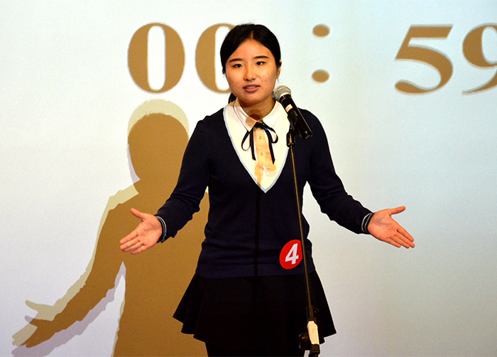 演讲比赛从8时开始至12时30分结束,比赛由定题演讲、评委提问、即兴演讲三个环节组成。赛场上,选手们个个神采飞扬、激情满怀,用流利的英语和敏捷的思维,彰显青春的风采和各自的英语功底,不时赢得观众的阵阵掌声。比赛结束后,评委对比赛进行点评,对选手们的出色表现给予了高度评价。