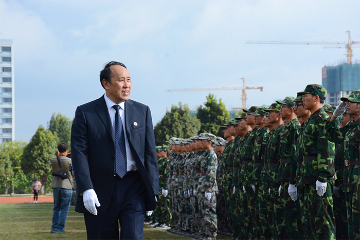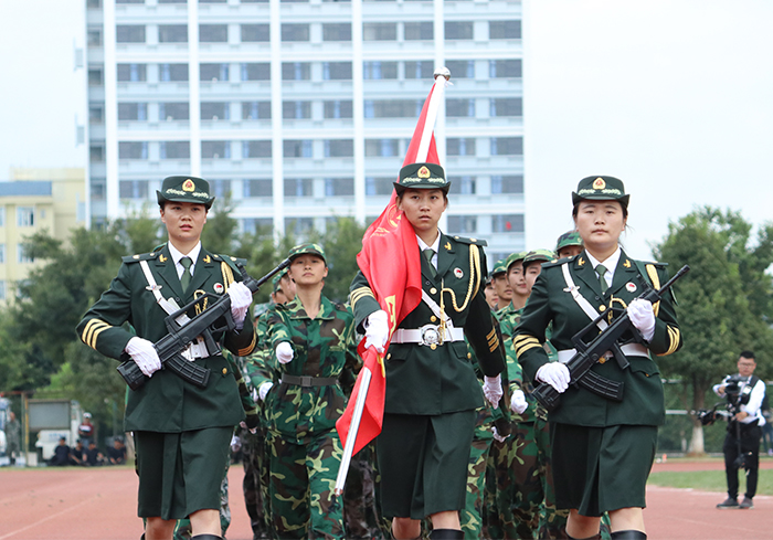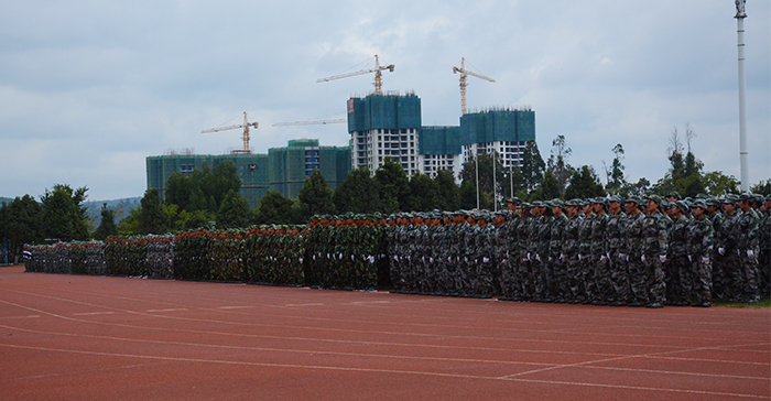 9月30日,beat365在田径场举行2017级新生军训汇报表演暨总结表彰大会。学校党委书记陈永明,校长黎素梅,党委副书记张祖武,副校长郭华、董建华、马银海、沈凡,副校级领导孙勇,武警边防士官学校副校长李荣、训练部部长任洪川、训练部副部长赵立志、业务系主任高忠良、教育处处长唐业宏和官渡区人民武装部政委周文斌出席大会。 4800余名同学时刻保持着“坚韧不拔、毫不松懈、永不服输”的精神,在14天的军训过程中,不畏烈日当空,不惧风吹雨打,克服小伤小痛,顺利地完成了军训。今天,他们精神饱满,整装待发,时刻准备着接受领导检阅。 汇演进行第一项,奏国歌,迎国旗。庄严的国歌响起,全场肃立,护旗队高举五星红旗,缓缓走过队列。迎国旗完毕,党委书记陈永明检阅军训方队,当陈书记走过方队时,嘹亮的口号带着无限的活力,响彻整个校园,“首长好!”“为昆院争光!”同学们斗志昂扬,意气风发,将14天的军训成果展现得淋漓尽致。在《歌唱祖国》的乐声中,标兵就位,分列式开始。国旗护卫队是汇演方队的排头兵,持枪方队、各营方队、国旗班紧随其后。分列式场面宏大,气势非凡。 分列式完毕,军事训练科目汇报表演开始。第一个表演的是队列操方队,40多位女同学将舞蹈艺术和军事动作融为一体,用杨柳般婀娜的身姿为我们上演了美轮美奂的视觉盛宴。在钢与柔的环境反差下,女子队列方块登场了,她们身着迷彩服,手戴白色手套,随着队形变幻出欢庆党的十九大的图案,整个画面流畅整齐,现场掌声不断。擒敌方队的361名同学汇编成19行19列的方队,寓意喜迎党的十九大的召开。在一声声“杀杀杀”中,女生匕首操表演有序进行,她们用简单而又准确的动作展现出敢于拼搏的精神。 汇演结束后,党委副书记张祖武宣读了《关于表彰beat365官方网站关于2017级学生军训优秀集体,优秀个人的决定》。与会领导们为内务优秀宿舍、军训优秀学员、优秀带队教官代表、优秀辅导员颁奖。外国语学院2017级英语1班的徐满笑同学作为军训优秀学员代表发言。 最后,校长黎素梅作总结讲话,她对同学们提出了三个希望:一是希望同学们能在今后的学习生活中保持、巩固和发扬在军训过程中用辛勤汗水换来的好作风、好品质把军训成果转化为刻苦学习和积极生活的动力。二是希望同学们能发扬脚踏实地、百折不挠的精神。三是希望同学们能继续巩固和发扬集体主义精神。
