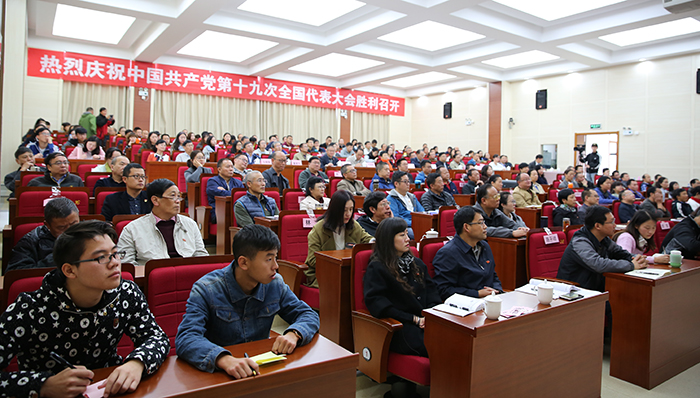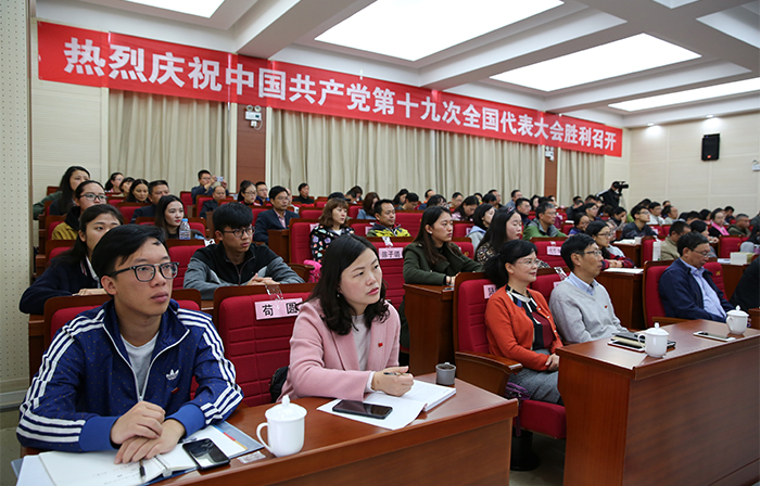 盛世中华奏凯歌,盛会鼓舞人心、报告催人奋进。10月18日上午,举世瞩目的中国共产党第十九次全国代表大会在北京人民大会堂隆重召开,习近平同志代表第十八届中央委员会向大会作了题为《决胜全面建成小康社会夺取新时代中国特色社会主义伟大胜利》的报告。习近平指出,中国共产党第十九次全国代表大会,是在全面建成小康社会决胜阶段、中国特色社会主义进入新时代的关键时期召开的一次十分重要的大会。大会的主题是:不忘初心、牢记使命,高举中国特色社会主义伟大旗帜,决胜全面建成小康社会,夺取新时代中国特色社会主义伟大胜利,为实现中华民族伟大复兴的中国梦不懈奋斗。 学校党委组织全体中层干部和师生员工代表集中收看党的十九大开幕盛况。党委书记陈永明,校长黎素梅,党委副书记张祖武,纪委书记王映平,副校长董建华、马银海、沈凡,副校级领导孙勇等党政领导班子成员与干部、师生员工们一同聆听习近平同志代表十八届中央委员会向大会作的报告。各党总支、直属党支部也结合实际,利用电视、广播、网络等多种途径,采取集中与分散的形式,组织师生收听收看。习近平总书记作的报告引起师生强烈反响。 大家一致认为,习近平同志向大会所作的报告,高举中国特色社会主义伟大旗帜,全面总结了过去五年的伟大成就和历史性变革,系统阐述了构成新时代坚持和发展中国特色社会主义的基本方略,进一步明确了未来一个时期党和国家事业发展的大政方针和行动纲领,科学谋划了到本世纪中叶的战略性发展目标和宏伟蓝图,为实现中华民族伟大复兴指引了前进的方向。报告旗帜、主题鲜明,内涵丰富,高屋建瓴,思想深刻,鼓舞人心,催人奋进。 陈永明书记指出,党的十九大胜利召开是一次具有重大历史意义的会议。大会标志着中华民族伟大复兴的中国梦将开启一个新的具有重大历史意义的新篇章。大会也向世界展示了以习近平同志为核心的党中央高举中国特色社会主义伟大旗帜,全党全国各族人民向着中华民族伟大目标奋勇前进,勇往直前。大会让我们深深地感受到我们国家发生的具有重大意义的历史性变化,也让我们深深地感受到国家取得的伟大成就。这些成就的取得令我们深受鼓舞,也倍感自豪。 陈永明书记强调,beat365官方网站作为一所高等院校肩负着为中国特色社会主义培养合格建设者和接班人的重任。学习好贯彻好党的十九大精神,用党的十九大提出的新理论新思想新要求武装广大干部、师生,这将是当前最重要的政治任务。我们作为高校要始终回答好怎么样培养人,培养什么样的人这一重大历史问题。要坚持中国特色社会主义办学方向,坚持立德树人这一根本任务。我们将在党的十九大精神的指引下深化学校教育体制机制改革,推动学校教育、科研和人才培养工作。 “过去五年,党的事业、国家的事业取得的进步和发展,每一个共产党员、每一个中国人都真切感受到巨大的变化,我为国家的日益富强倍感自豪,这一切和党的坚强领导密不可分。”人文学院党总支书记陈嘉教授表示,作为一名高校的党员教师,要牢记习近平总书记的重要讲话精神,牢记使命,把教书育人和为人民服务的宗旨贯穿到具体的工作之中,认真学习、努力工作,不辜负师生的期待和信任,在新的时代争做一名优秀的共产党员。 马克思主义学院形势与政策教研室主任苟园副教授说,看到在过去五年以习近平同志为核心的党中央带领全国人民迎难而上、革故鼎新、砥砺奋进取得的辉煌成就,由衷感到自豪和骄傲。作为一名高校思想政治理论课教师,我将认真学习党的十九大报告,牢记高校教师的使命与责任,围绕立德树人的中心工作,坚持不懈传播马克思主义理论,为学生的一生成长奠定科学的思想基础,为社会主义现代化建设培养合格建设者和可靠接班人;以开拓进取的精神为实现中华民族的伟大复兴贡献自己的力量。 “作为一名高校的普通党员教师,我认为理想信念是共产党人安身立命之本和政治灵魂,所以我们要把立德树人作为使命,把为共产主义教育事业奋斗终身作为自己的职责,为党的教育事业鞠躬尽瘁。”国际交流合作处留学生管理科科长陆向红老师表示,在党的十九大精神指导下,发挥昆明地处辐射南亚、东南亚的地缘优势和学校办学特色的吸引力,进一步做好南亚、东南亚留学生工作,搭建交流桥梁,传播博大精深的中国文化,培养留学生知华、爱华、亲华的情感,为“一带一路”沿线国家的经济文化发展添砖加瓦。 “过去五年我国取得的巨大成就,我作为一名中国人而自豪。”人文学院2015级历史学专业学生邓博文表示,我作为历史学师范类专业的学生,今后在自己的专业领域上不断努力学习钻研,将来在教师岗位上秉承立德树人、以身为范精神,把自己的知识传授给学生,让他们懂得老一辈革命家的艰辛奋斗历程,懂得新中国成立的来之不易以及我国的光辉历史,为实现中华民族伟大复兴的中国梦而不懈奋斗。我会继续严格按照党章的要求履行一名共产党员的职责,不忘初心、牢记使命,继续前进。 “地铁、高铁如期开通,让我切身感受到出行的方便和‘中国速度’。”自动控制与工程管理学院2016级交通运输专业学生赵茜茜自豪地说,昆明创建文明城市,基础设施得到进一步的完善,人民素质不断提高,城市凝聚力和竞争力进一步