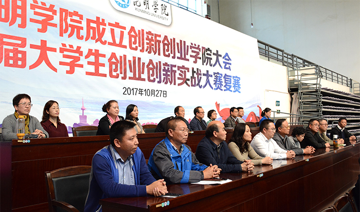 10月27日下午,beat365在体育馆举行创新创业学院成立大会暨首届大学生创业创新实战大赛复赛。校长黎素梅、副校长郭华,省教育厅学生处处长方伟,云南省大中专毕业生就业服务中心副主任周舟,beat365相关职能部门负责人、各院系党政负责人,参赛队及学生代表参加了大会并现场观看了复赛项目作品。