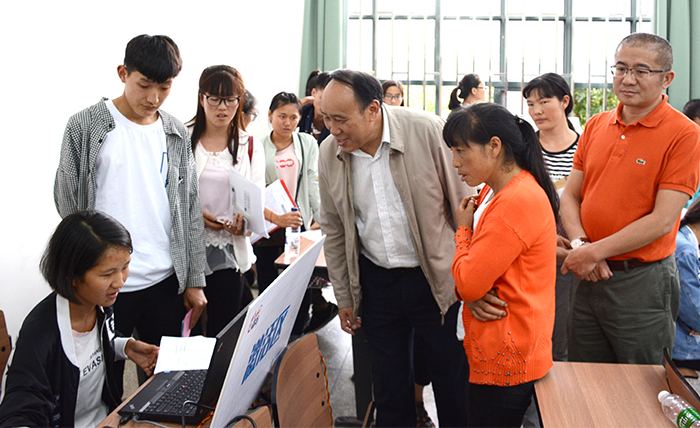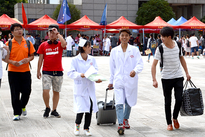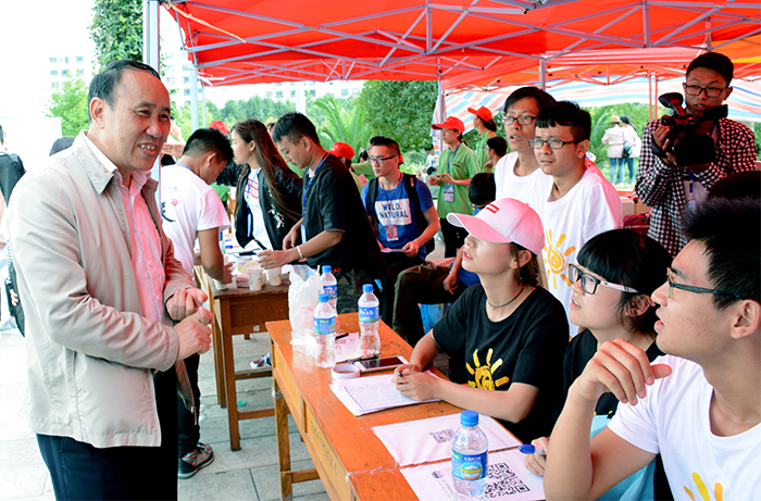 陈永明书记黎素梅校长到新生报到点指导工作并看望新同学