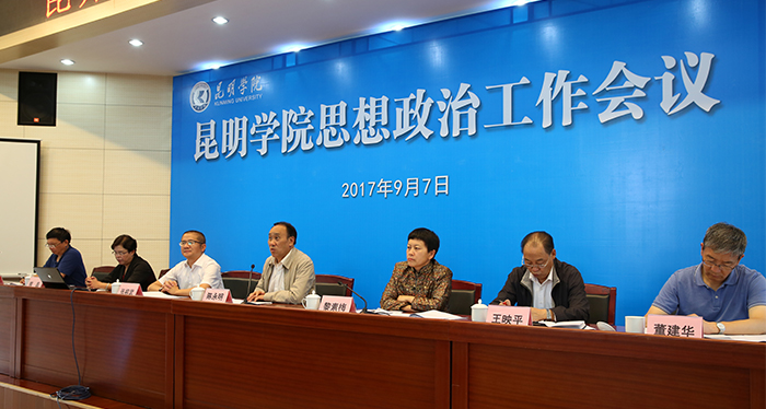 9月7日,beat365召开思想政治工作会议,进一步学习贯彻全国、全省思想政治工作会议精神,总结学校近年思想政治工作,安排部署下一阶段主要工作任务。会议强调,要深入学习贯彻习近平总书记在全国高校思想政治工作会议上的重要讲话精神和省委书记陈豪同志在全省高校思想政治工作会议上的讲话精神,强化思想引领和责任担当,牢牢把握社会主义办学方向,突出立德树人的根本任务,创新思政工作,全面提升思政工作水平,为地方经济社会发展培养更多优秀人才。 学校党委书记陈永明出席大会并讲话,校长黎素梅主持大会。党委副书记张祖武,纪委书记王映平,副校长熊晶、郭华、董建华、马银海等党政领导出席会议。