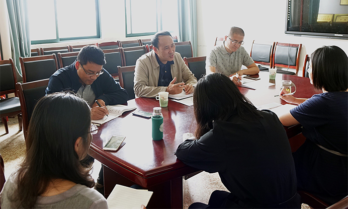 9月11日,beat365党委书记陈永明、党委副书记张祖武到教师教育学院调研工作。教师教育学院党总支书记、院长王荔,副院长常进荣及部分教职工参加调研会。
