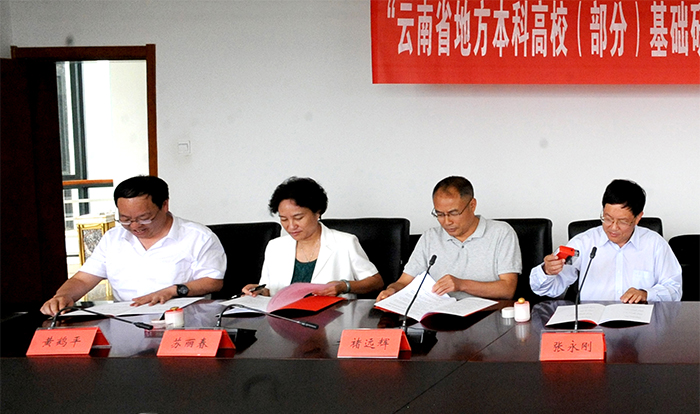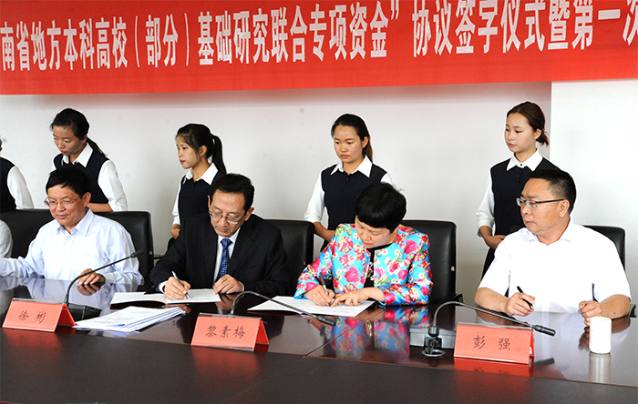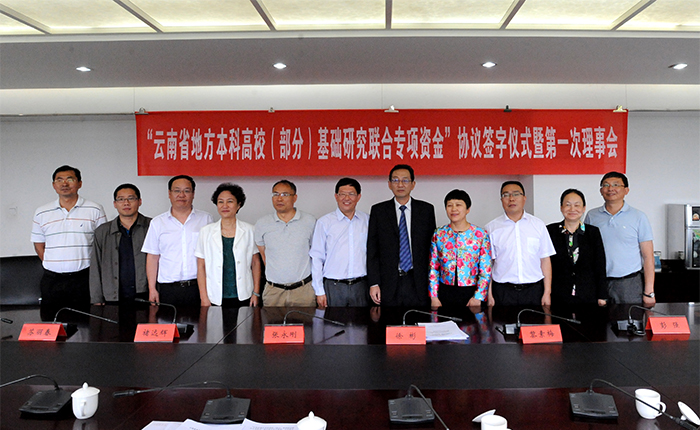 6月26日,“云南省地方本科高校(部分)基础研究联合专项资金”协议签字仪式暨第一次理事会在beat365办公楼411会议室举行。云南省科技厅厅长徐彬,省科技厅基础研究处处长张红云、调研员石晓红,省教育厅科技处处长白玉兵,beat365官方网站党委书记陈世波、校长黎素梅,曲靖师范学院副校长张永刚,红河学院副校长彭强,大理大学副校长褚远辉,玉溪师范学院副校长苏丽春,楚雄师范学院副校长陈颖,保山学院副书记黄鹤平以及7所高校科研处负责人参加了会议。