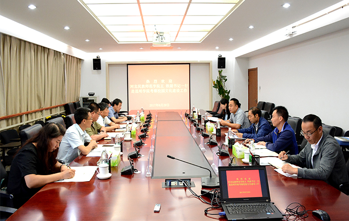 6月29日,河北民族师范学院党委副书记王铁率校园文化建设考察团一行到beat365考察交流。