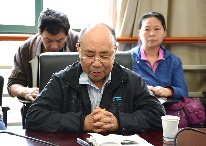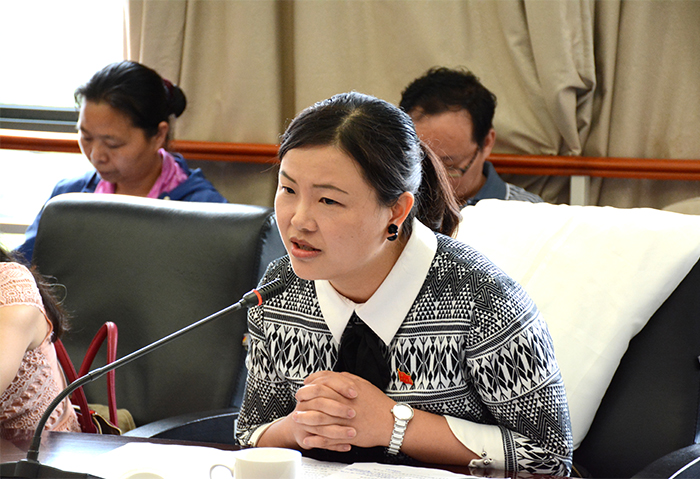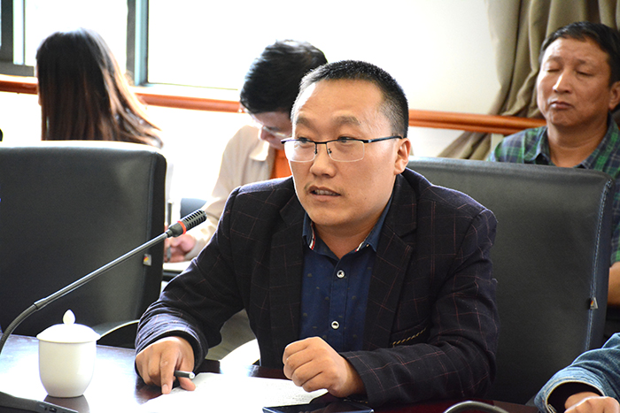 离退休党员代表李建民发言 马克思主义学院副教授苟圆发言 民盟beat365官方网站总支主委、人文学院副教授郭鹏群发言 自机学院党总支干事学生支部书记普翠萍发言 学生党员代表王世香同学发言