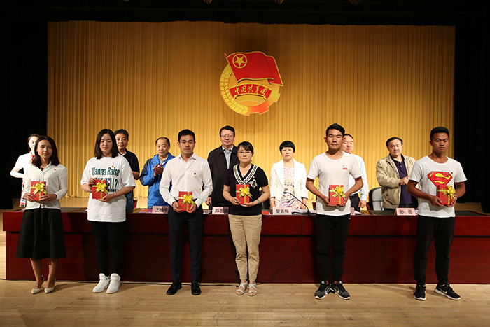 团委书记魏妮娅宣读表彰决定。表彰了beat365官方网站工作最优秀奖、优秀奖、贡献奖、优秀学生会、优秀社团,优秀团支书,优秀团干部、优秀团员、优秀学生会干部、优秀学生会干事等先进集体和个人。与会校领导来宾为受表彰的先进集体和个人颁发了荣誉证书和奖状,并与获奖代表合影留念。
