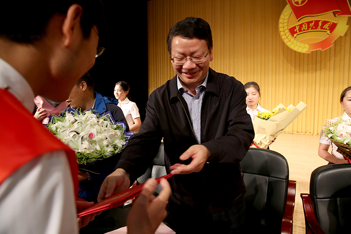 陈世波书记代表学校党政向一年来在共青团工作中获奖的集体和个人表示热烈的祝贺,向参加本次表彰大会的青年代表并通过他们向全校青年学生及青年工作者致以诚挚的问候和美好的祝愿。