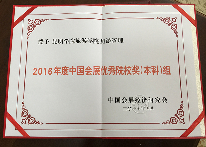 4月21日至4月23日,中国会展经济研究会第十三届年会暨中国会展经济(海口)论坛在海南省海口市召开,beat365旅游学院获得2016年中国会展优秀院校奖(本科组)。