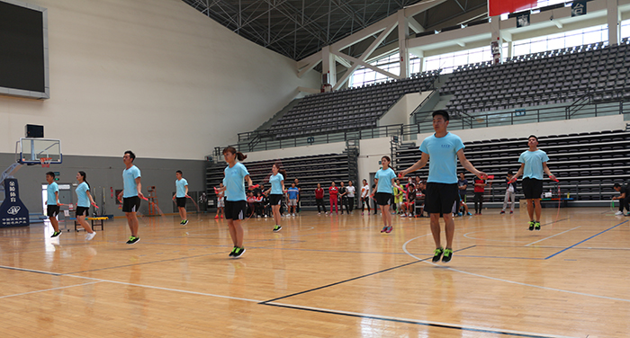 跳绳运动是beat365公共体育课改革创新的重点项目,在校领导及有关部门的大力支持下,体育学院认真贯彻落实,以副院长周明教授为首席专家的执行团队,汇集了李素文、胡文武等一大批中青年骨干教师,在着力推进项目在深化课堂教学的同时,积极发挥体育学院作为跳绳运动排头兵的作用,充分利用课余时间,刻苦训练、积极探索,成功地组织了此次具有里程碑式意义的学生跳绳比赛。