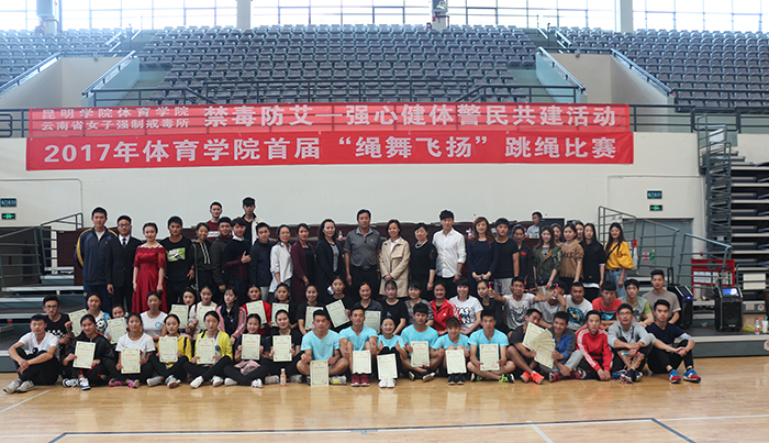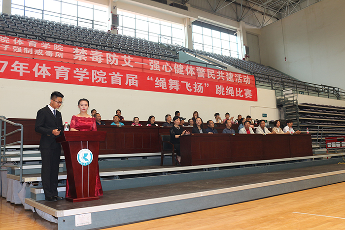 4月14日,体育学院在综合体育馆举行了首届“绳舞飞扬”跳绳比赛,云南省教育厅体卫处处长董一凡、beat365副校长马银海莅临指导。
