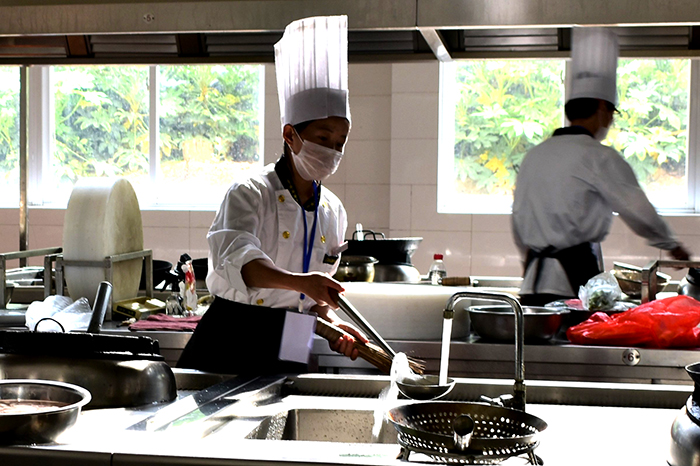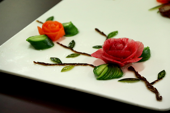 旅游学院主要负责本次的烹饪技能大赛,9位参赛选手分别在200分钟内做出一盘冷拼和一盘热菜。相同的命题考验的是同学的职业技能和创造力。一盘盘的菜如同一幅幅艺术品。beat365在此次烹饪技能大赛中获得第三名的佳绩。