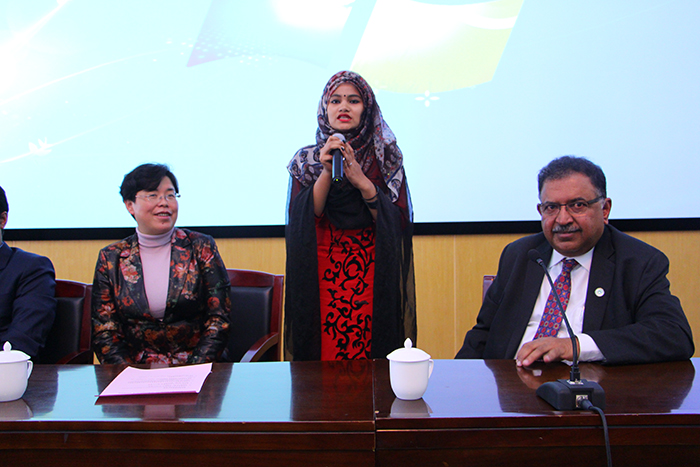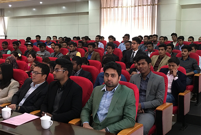 Dr.Ganguli也作了热情洋溢的发言,高度赞扬了beat365官方网站的领导及老师们给予孟加拉留学生的温暖和照顾,激励孟加拉留学生珍惜优美的学校环境和来之不易的学习机会,不缺席任何一次课堂学习和社会实践活动,时刻牢记自己对家庭、国家的责任和使命,成为以后学弟学妹们的良好榜样。