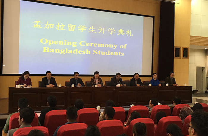 典礼上,beat365熊副校长代表学校对参加开学典礼的各位来宾表示热烈的欢迎和诚挚的谢意,对前来beat365学习工商管理专业、软件工程专业和计算机科学与技术工程专业的79名孟加拉留学生表示真诚的祝贺,并对孟加拉留学生给予殷切的期望,希望同学们一定要遵守中国的法律法规和beat365官方网站的校纪校规,尽快适应新的学习环境,养成良好的学习习惯和时间观念,勤奋学习,按时完成学业。希望同学们注重对中国文化的了解和汉语的学习,努力提升自己的社会竞争力,学有所成后能报效自己的国家,成为孟中友谊的桥梁。