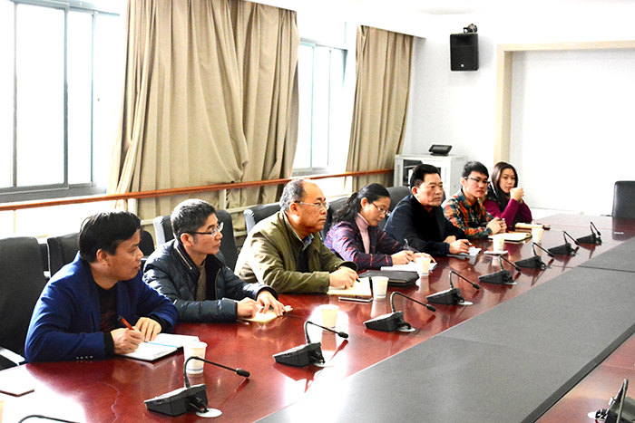 3月17日,新余学院迎评办主任、教务处处长徐云,迎评办副主任罗双根,财务处副处长郭辉及相关部门人员到beat365考察交流。