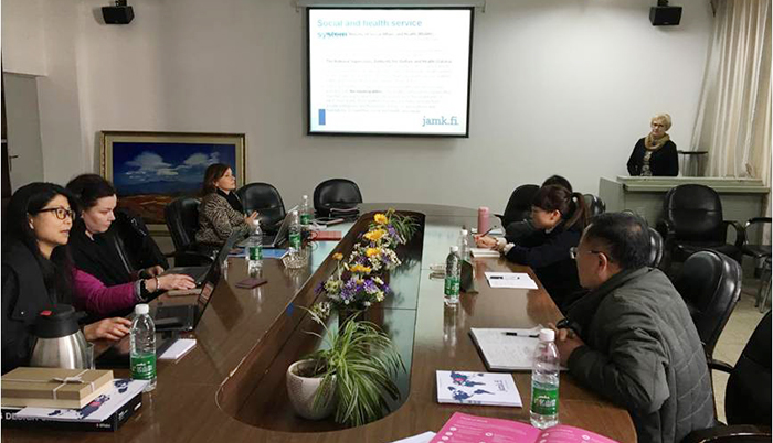 日前,第一阶段活动已经启动。由芬兰JAMK应用科技大学派送3位老年护理及康复专家到beat365医学院进行为期5天的交流培训。3位专家已经于1月11日到达昆明。按照双方商定的第一阶段活动内容,在5天的时间里,芬兰专家将与医学院护理、康复治疗技术专任教师开展关于两国老龄化、老年医学、护理发展现状及教育模式的交流,并对beat365附属医院、昆明市的相关老年病医院以及老年公寓进行了考察。