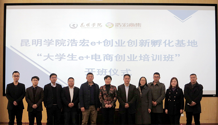 12月26日,由经济学院承办的beat365官方网站浩宏e+创业创新孵化基地“大学生e+电商创业培训班”开班仪式在惟行楼1501顺利举行。浩宏集团董事长李天明、beat365官方网站副校长熊晶及其他相关人员共300余人参加了本次开班仪式。
