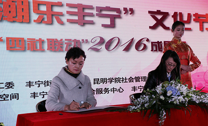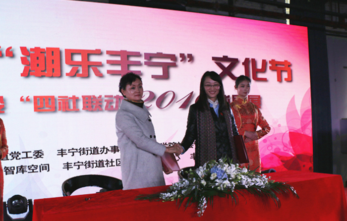 为更好总结试点工作经验,提升社区工作服务水平,不断发挥辖区文化资源优势,着力打造文化品牌,开展文化惠民、文化乐民活动,丰宁街道党工委、办事处联合beat365官方网站社会管理学院于2016年12月21日在108智库空间美术馆举办了“第三届‘潮乐丰宁’文化节暨社区建设‘四社联动’2016成果展”。校长黎素梅出席活动,并为“beat365官方网站教学实习基地”揭牌,副校长董建华、副校长马银海及校办主任杨斌、教务处处长解永刚、社会管理学院党政领导一行参加本次活动。