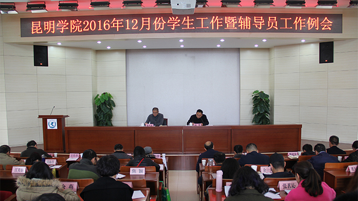 会上,宣传部、教务处、招就处、保卫处、后勤集团、学生处分别结合部门职责和工作安排,组织学习贯彻全国高校思想政治工作会议精神活动;组织全校干部教职员工参加 2016 年全省国家工作人员在线学法及考试;学校大型招聘会的组织、创业团队遴选;校园治安情况及安全教育;寒假留校学生安排;学生晚归、使用违规用电器、辅导员深入宿舍情况;贫困生资助、学生医保参保等近期情况进行了通报和说明;学生处要求全校各班召开主题班会(学习陈世波书记代表校党委作的第一次党代会上的报告);对学生网贷情况、学生离校汽车票购买、学平险申报、辅导员在职攻读博士学位动员等工作进行安排布置。