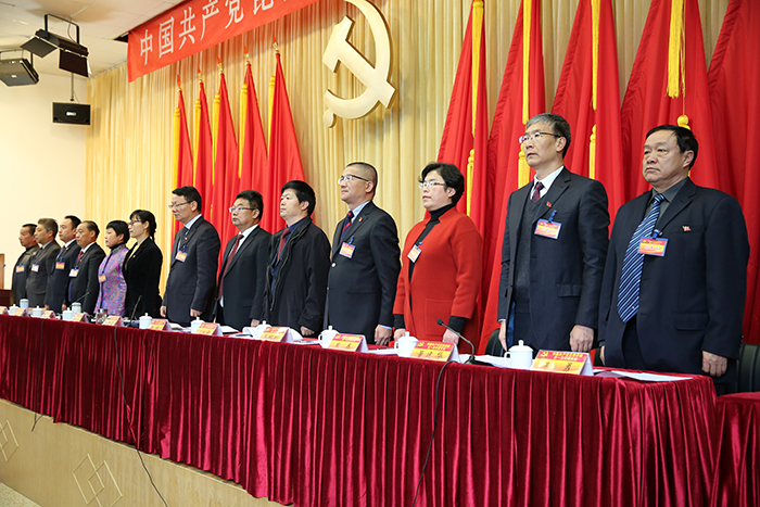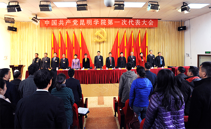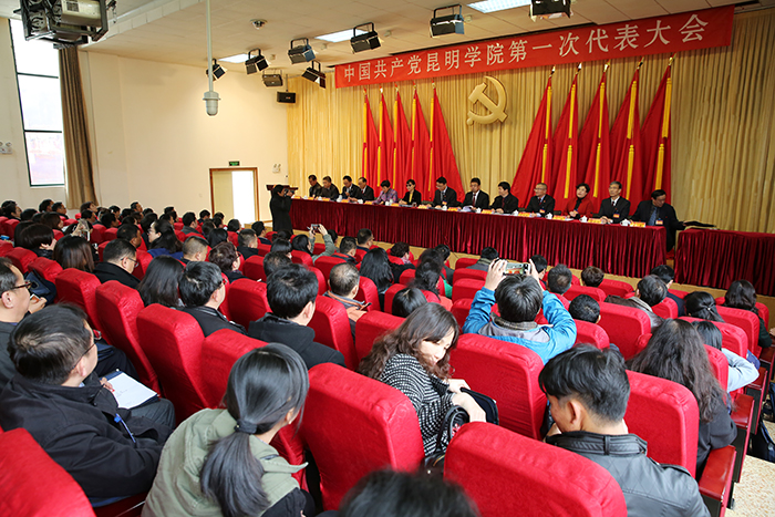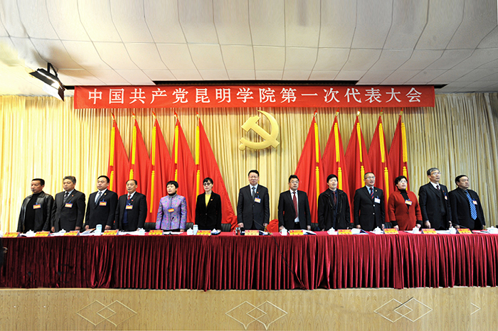 博文楼附楼报告厅气氛庄重、热烈,主席台后幕正中是镰刀和锤头组成的金色党徽及上方“中国共产党beat365官方网站第一次代表大会”红色会标醒目而催人振奋。云南省委高校工委委员、省教育厅党组成员、省招生考试院党委书记王永全,昆明市委常委、市委组织部部长鲁斌,昆明市副市长王建颖应邀出席开幕式。大会主席团执行主席黎素梅、陈世波、张祖武、王映平、熊晶、郭华、董建华、沈凡、孙勇、李翔在主席台就座。