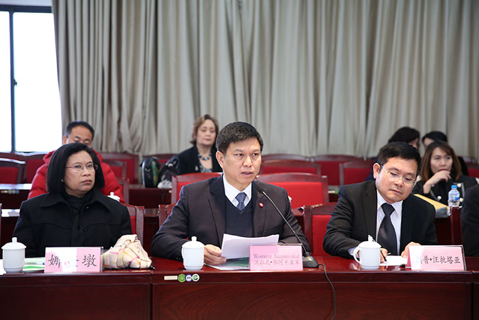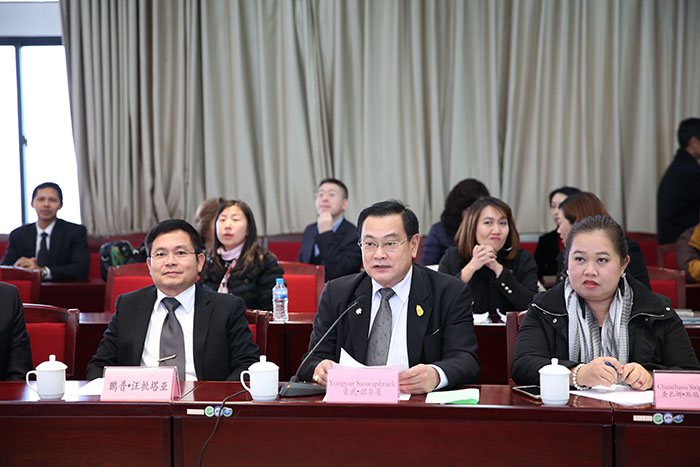 黎素梅校长指出,学校坚持对外开放办学,先后与19个国家和地区的72所院校、教育机构开展了实质性的合作,签订了105份合作备忘录和协议,成立了东盟商学院、曼谷实习基地等9个国际合作平台。与泰国各高校、教育机构建立了良好的合作关系,在国家和云南省把云南建设成为面向南亚东南亚辐射中心的发展战略引领下,积极开展师生互访、短期培训、教育教学、项目合作、实习就业等广泛合作,为中泰文化交流、应用型人才培养做出了积极的贡献。