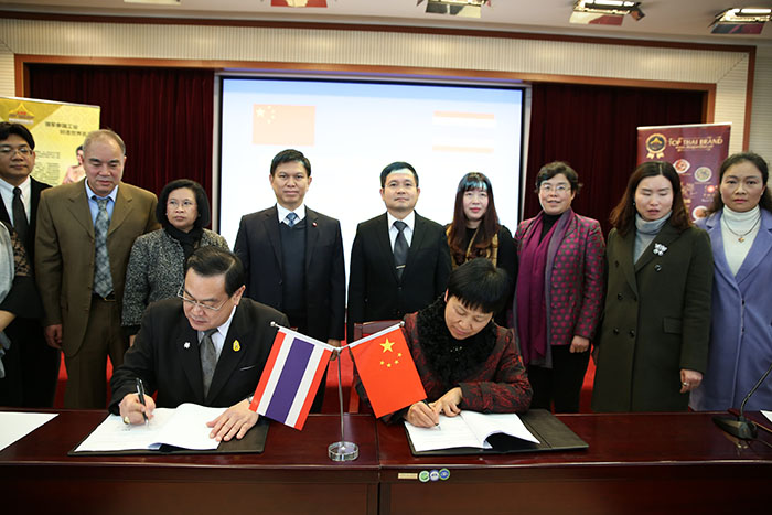 11月29日,中泰职业教育交流会在昆举行。下午会间,中泰职业教育交流会的各位代表访问beat365,并与beat365签署3项合作协议。beat365校长黎素梅分别与泰国工业部食品研究所所长勇武•韶华蓬,泰国馆集团有限公司董事长李文莉和昆明滇池泛亚文化研究学会执行会长龙东林等签署合作协议。泰王国驻昆总领事鹏普•汪批塔亚、泰王国驻昆商务领事娜查敦出席访问交流会,并见证合作协议签署。