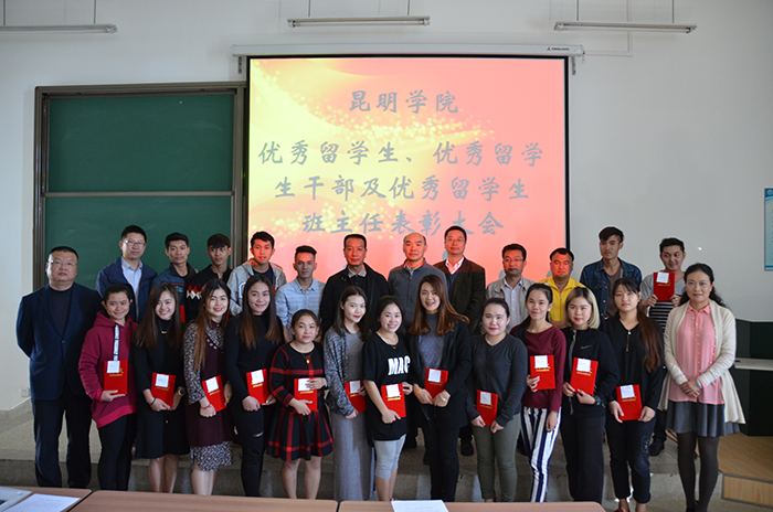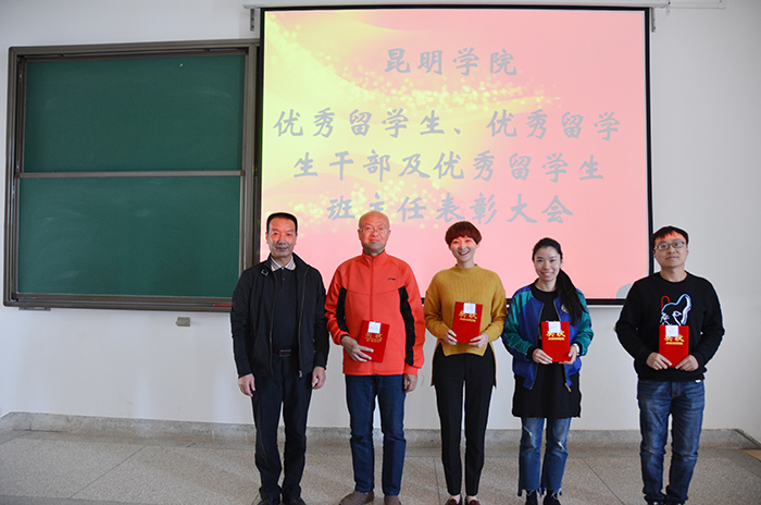 城乡建设与工程管理学院院长莫南明、信息技术学院书记陶军、人文学院副书记吴彦勤分别宣读了对优秀留学生、优秀留学生干部及优秀留学生班主任的表彰决定,李翔副校长及到会学院领导为获奖留学生、留学生干部及优秀留学生班主任颁发了获奖证书并合影留念。