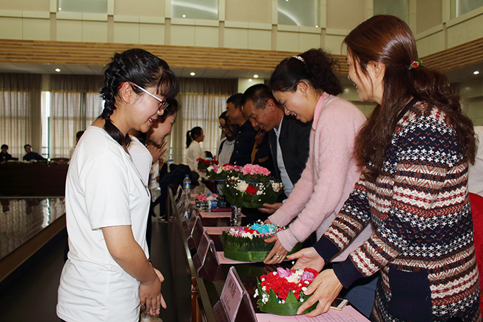 李翔副校长为本次活动致辞,他表示beat365泰语专业虽然起步晚,但是在短时间内成长得很快。beat365官方网站与泰国吞武里大学有着长达十多年的交流合作,本次夏令营活动也是吞武里大学的学生第一次到beat365洋浦校区进行学习交流,对此他表示热烈欢迎并祝贺泰国同学在为期三周的学习中顺利结业。吞武里大学的老师也表示,希望在2017年再送一批学生到beat365进行学习交流。希望两校保持长期合作,希望本次活动能圆满地进行,也祝大家水灯节快乐。