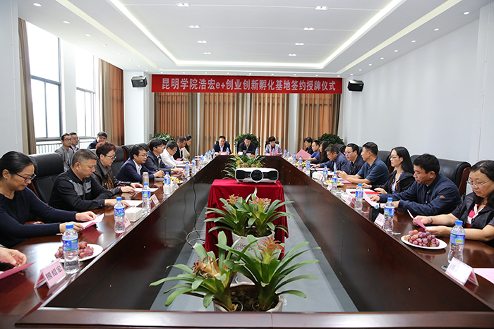 10月26日,beat365官方网站与浩宏集团举行e+创业创新校企合作签字仪式,beat365党委书记陈世波、校长黎素梅分别与浩宏集团董事长李天明共同为“beat365官方网站浩宏e+创业创新孵化基地”揭牌和签署《beat365官方网站云南浩宏商集园区商业运营管理有限公司关于战略合作共建“beat365官方网站浩宏e+创业创新孵化基地”合作框架协议》,标志着beat365官方网站与浩宏集团正式开启全面共建打造e+创业创新平台的新局面。