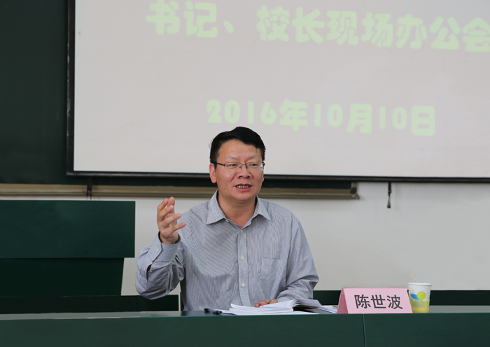 10月10日,学校在马克思主义学院召开思想政治理论课建设书记、校长现场办公会,学校党委书记陈世波、校长黎素梅、副校长郭华及党委办公室、校长办公室、党委宣传部、人事处、教务处、科研处、计财处、学生处、团委等相关职能部门领导亲临现场调研指导工作,针对马克思主义学院建设发展中存在的困难和问题,以及如何进一步加强和改进beat365思想政治理论课建设,提出了对策、思路、希望和要求。会议由副校长郭华主持。