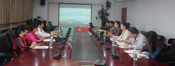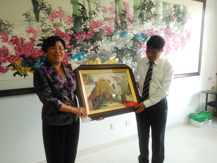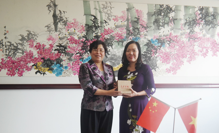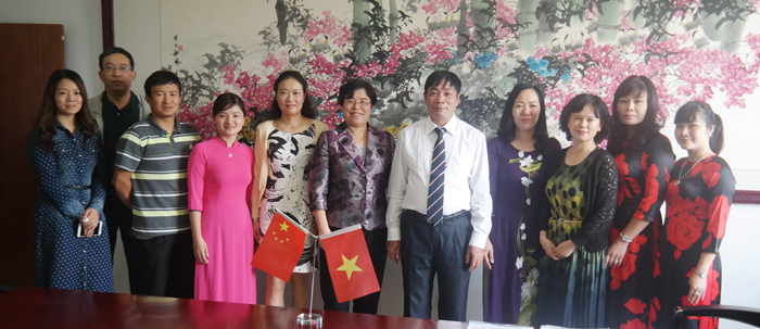 学校副校长熊晶率国际交流合作处副处长陈静,教务处副处长吴晓柏、计划财务处副处长王荣林以及国际交流合作处相关教师对越方邓德泰校长、副校长吴氏离女士、财务处主任吴氏秋荷、职业处主任黎氏玉莺和校长助理兼翻译阮垂英老师一行5人的到来表示欢迎。