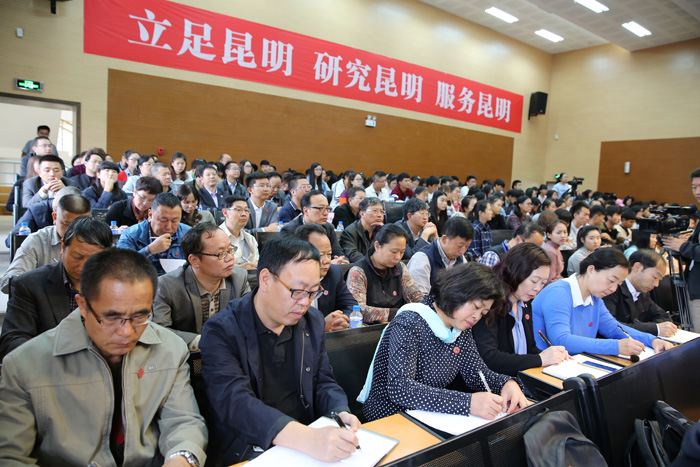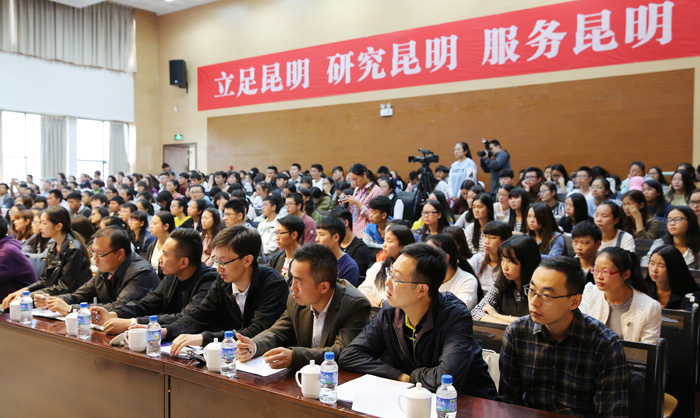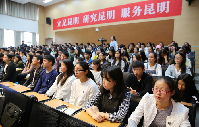 “大学生活是人生中最美好的回忆,看到同学们一个个朝气蓬勃、充满活力,自己仿佛又回到了30多年前青春年少、意气风发的大学时代,回到了那段孜孜求学、憧憬人生的校园时光。”“昆明既是大家求学的地方,也是大家共同的家园,昆明的每一点进步、每一次成长都与大家息息相关,相信大家也在时刻关注着昆明的变化和发展。”程连元书记真切的开场话语,一下拉近了师生的距离,并自然引出了报告主题——昆明的发展与现状、愿景,让同学们对昆明增加一些了解、增添一份感情,更好地驻昆明、爱昆明、奉献昆明。