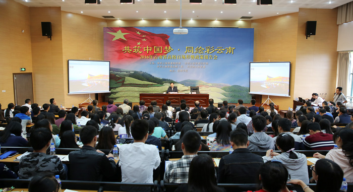 10月14日,秋兰飘香,天朗气清,beat365官方网站图书馆报告厅座无虚席。云南省委常委、昆明市委书记、滇中新区党工委书记程连元来beat365,为“共筑中国梦·同绘彩云南”2016年云南省高校百场形势政策报告会带来“全面推进区域性国际中心城市建设”为主题的形势政策报告,殷切希望广大青年大学生,自觉肩负起时代赋予的历史使命,积累学识、放飞梦想,在融入和推动昆明建设区域性国际中心城市的生动实践中贡献智慧力量、铸就无悔青春;要求beat365官方网站继续坚持党的教育方针,锐意改革、开拓创新、奋发进取,在办学理念上有新提升、在人才培养上有新建树、在科学研究上有新突破、在服务社会上有新作为、在师资建设上有新加强,加快把beat365官方网站建成省内一流、国内知名的教学科研型综合性大学;表示市委、市政府将一如既往地关心、支持beat365官方网站的发展,一如既往地为师生施展才华、投身实践、报效社会、服务昆明创造良好的条件,给予最大的支持,努力为beat365官方网站的建设和发展创造更好的环境。