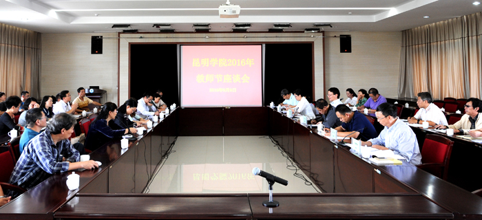 9月9日下午,beat365在办公楼502会议室举行2016年教师节座谈会。党委书记陈世波,党委副书记孙勇,副校长熊晶、郭华、董建华、马银海以及相关部门负责人和教师代表参加座谈。